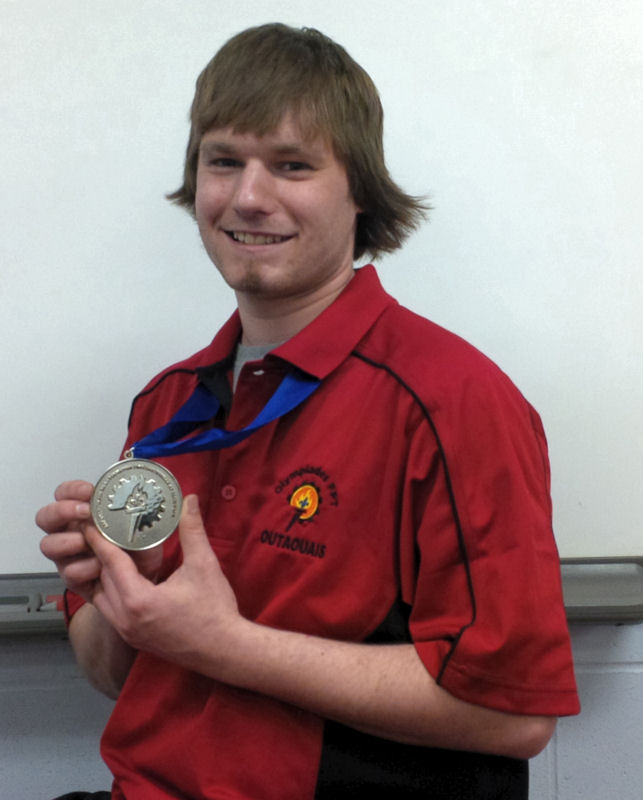 Alexandre Thibeault sur le podium aux 13e Olympiades. C'était la première fois que la formation Véhicule léger participait à la compétition.